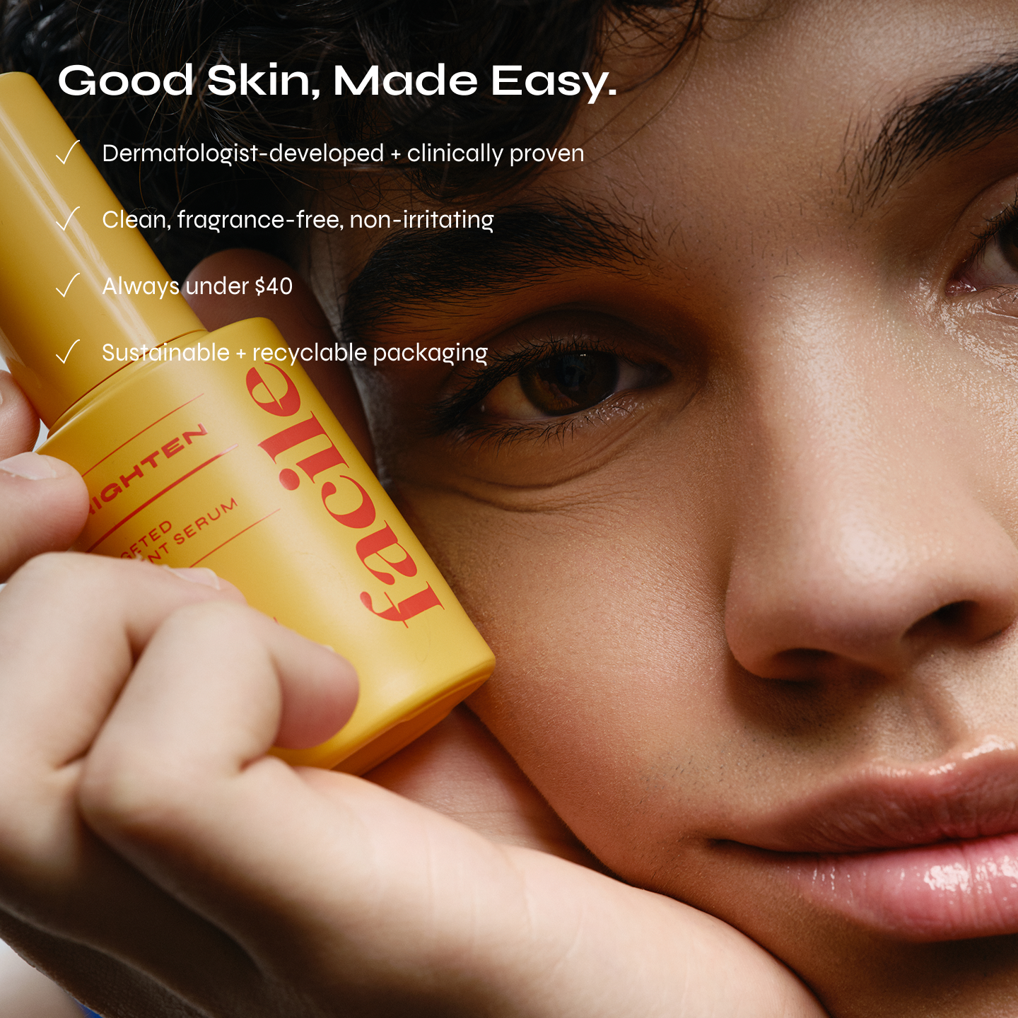 Facile means easy (by definition). Developed by board-certified dermatologist Dr. Nancy Samolitis, we’re all about clean, non-irritating formulas. Our responsibly packaged everyday essentials and targeted treatments are clinically proven, effective, and always under $40. Because good skin should be easy.